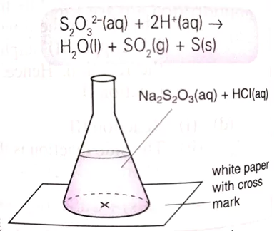 4. Gambar rajah menunjukkan eksperimen untuk menentukan kadar tindakbalas antara natrium thiosulfat dan asid hidroklorik. Kadar tindakbalas ditentukan oleh...