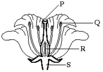 3. Rajah menunjukkan keratan suatu bunga. Antara bahagian P, Q, R dan S, yang manakah proses meiosis berlaku?