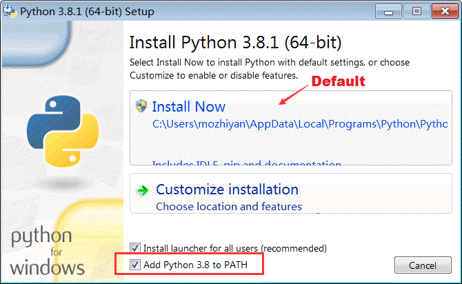 4. I choose “Windows x86-64 executable installer” which is a complete 64-bit offline installation packages. Double-click the downloaded python-3.8.1 (64 bits)
